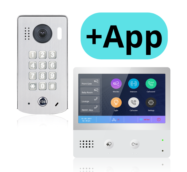 Vi lagerför 3 olika monitorer. WiFi monitor, standardmonitor & svarsapparat med telefon. WiFi monitorn kan vidarekoppla samtal till en app. Alla monitorer i systemet kan prata med två-vägs-samtal samt styra 2 reläutgångar.