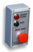 SS4000PB Är en box som kopplas till en Slumpkontroll via en kabel på 4,3 meter. Den har en stor knapp, och två LED. Kan användas som en separat enhet för styrning och indikering. Lysdioderna (LED) röd och grön, röd = kontroll och grön = OK. Det har en inbyggd piezo summer för att varna kontrollen. Två reläer, en för styrning och en för OK. Levereras med skruvar och pluggar till vägg. Kabel med kontakt 4,3 meter ingår.